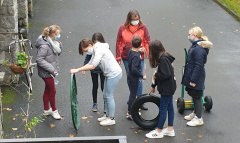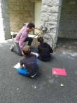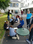 Au premier trimestre de l’année scolaire 2020-2021, nous avons eu un cours de mathématiques en extérieur. Nous avons pu mesurer le diamètre de la roue d’un vélo. Robert, l’agent, nous a fourni plein de disques et cercles différents (rouleaux, couvercles, roues de tondeuses, boites cylindriques,…) que nous avons mesurés également. Plus tard en classe nous avons divisé le périmètre de chaque cercle étudié par son diamètre. Nous avons trouvé un nombre bien connu depuis l’antiquité…