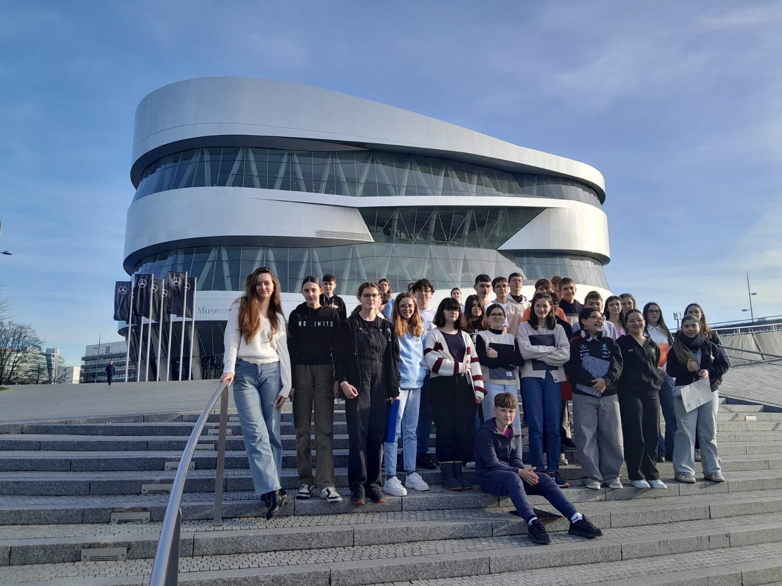 Le vendredi 12 décembre, les élèves français se sont finalement rendus à Stuttgart. Au programme : visite de la Staatsgalerie, où les élèves répartis en petits groupes ont dû choisir une œuvre et exposer leur ressenti à tous leurs camarades. Après un repas sur le marché de Noël dans le centre historique de Stuttgart, une visite du Mercedes Museum a ravi tous les amateurs de mécanique et d’histoire.